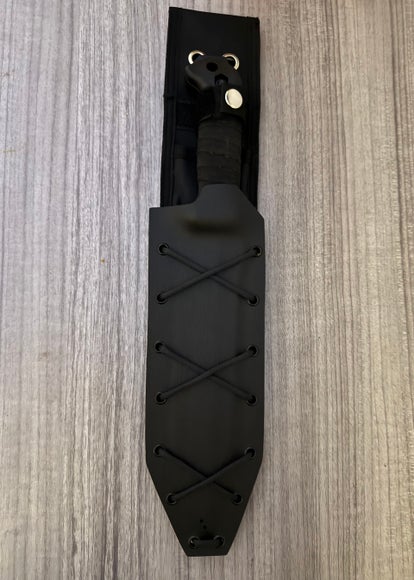 Kydex sheath for the Becker BK9 no belt clip designed to be paired with original BK9 sheath comes with paracord to attach to original sheath check out our YouTube @knife2seeya for instructional video